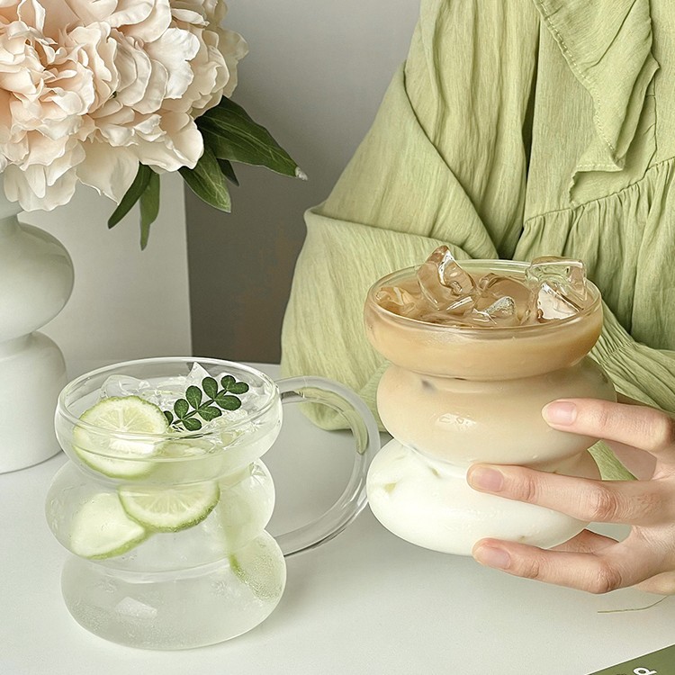 Taza de vidrio con patrón vertical japonés creativo estilo ins
