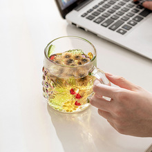 Botella de agua de vidrio de patrón de martillo resistente a alta temperatura espesada
